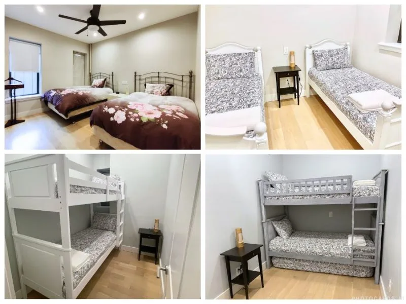 • Bedroom 4: 3 twin beds as a bunk bed and 1 floor mattress