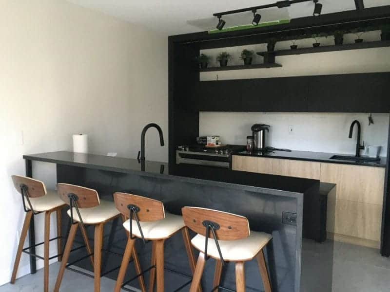 — 2nd ktichen: Meat side; sink, disposable pans, microwave, hot plate, gas stove tops, plastics. Pareve; oven, hot water urns, stove tops; Cholov yisroel side; microwave. disposable pans, plastics. with 2 bar stools.